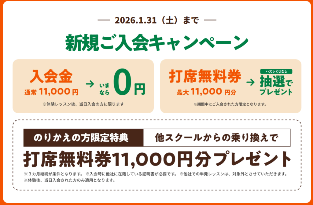 | 入会金 | 11,000円 ※2026.1.31まで無料 ※レッスン体験後、当日入会の方に限ります |