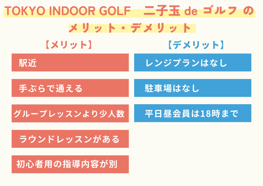 この記事では、私が実際にTOKYO INDOOR GOLF 二子玉 de ゴルフの体験レッスンに行ってきた感想をもとに初心者が行くべきかを詳しく解説します。ゴルフスクールを選ぶ決め手の一助になれば幸いです。