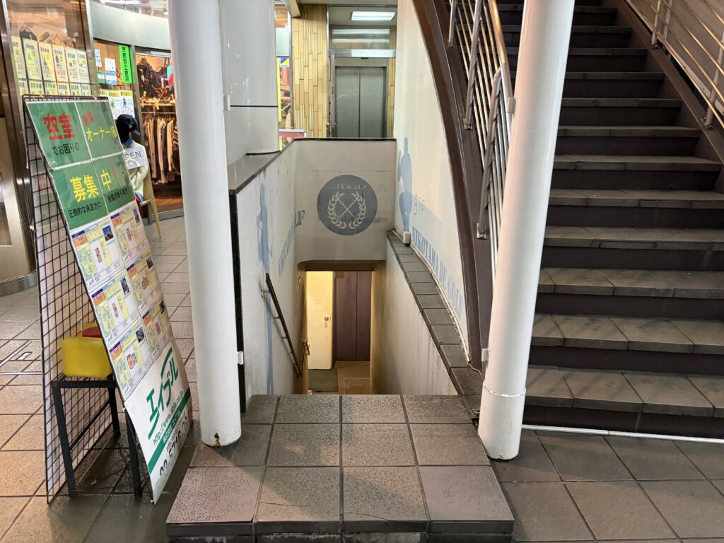 西口を出て、信号を渡ったらすぐの地下1Fにあります。