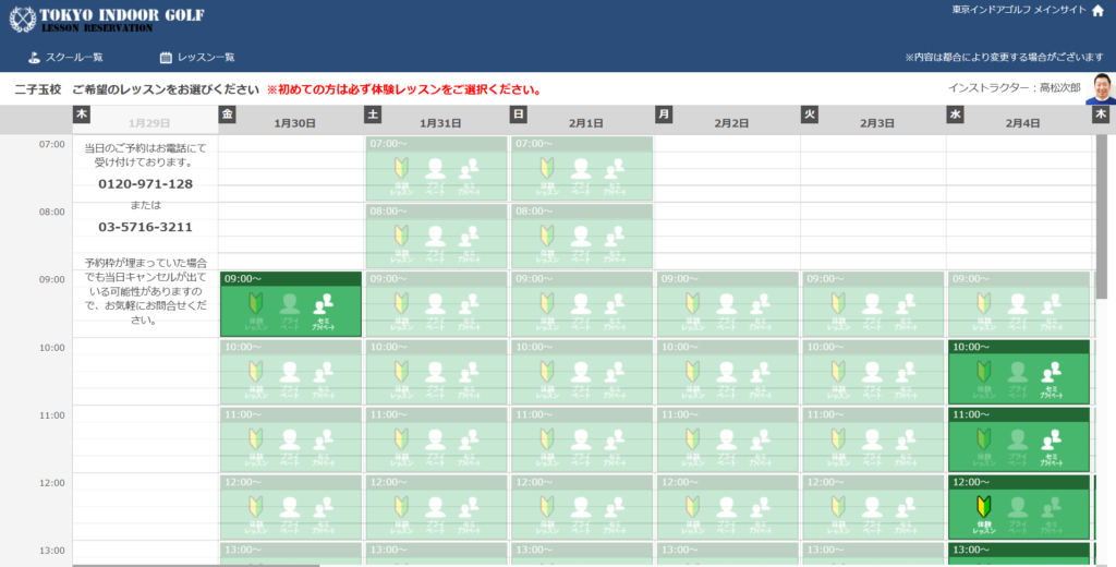初心者マークが体験レッスンができる日なので、行ける日を選択